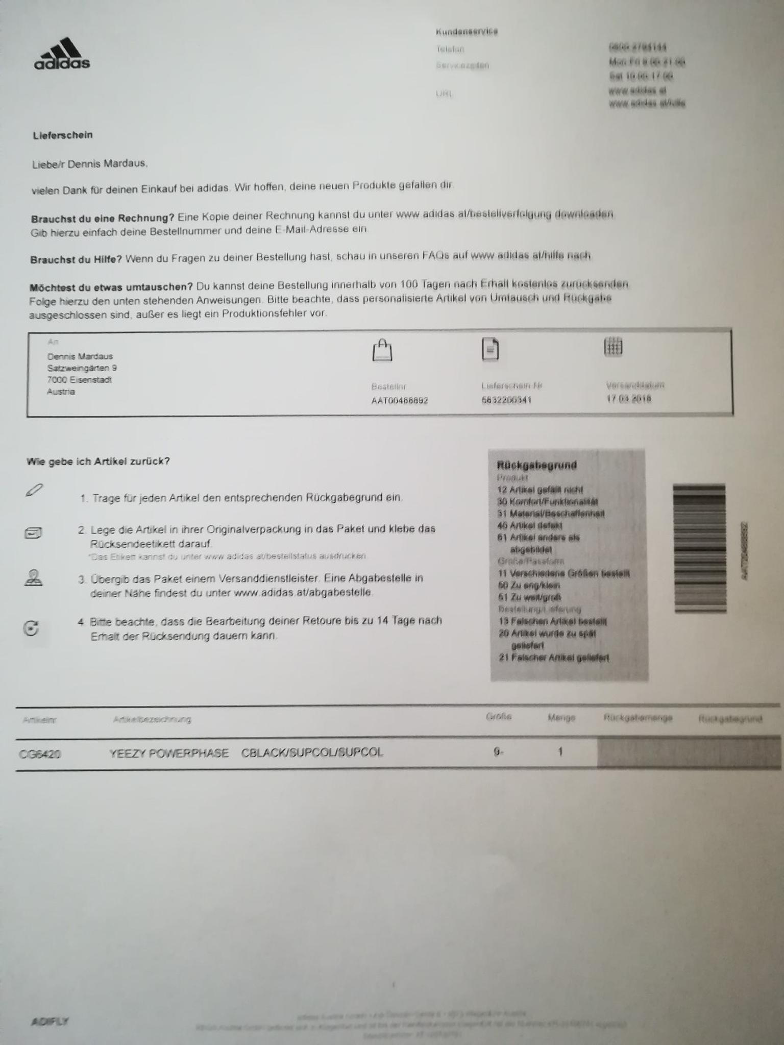 Trenne das rücksendeformular ab und schreib darauf den code für den grund der rücksendung, der am ehesten zutrifft.